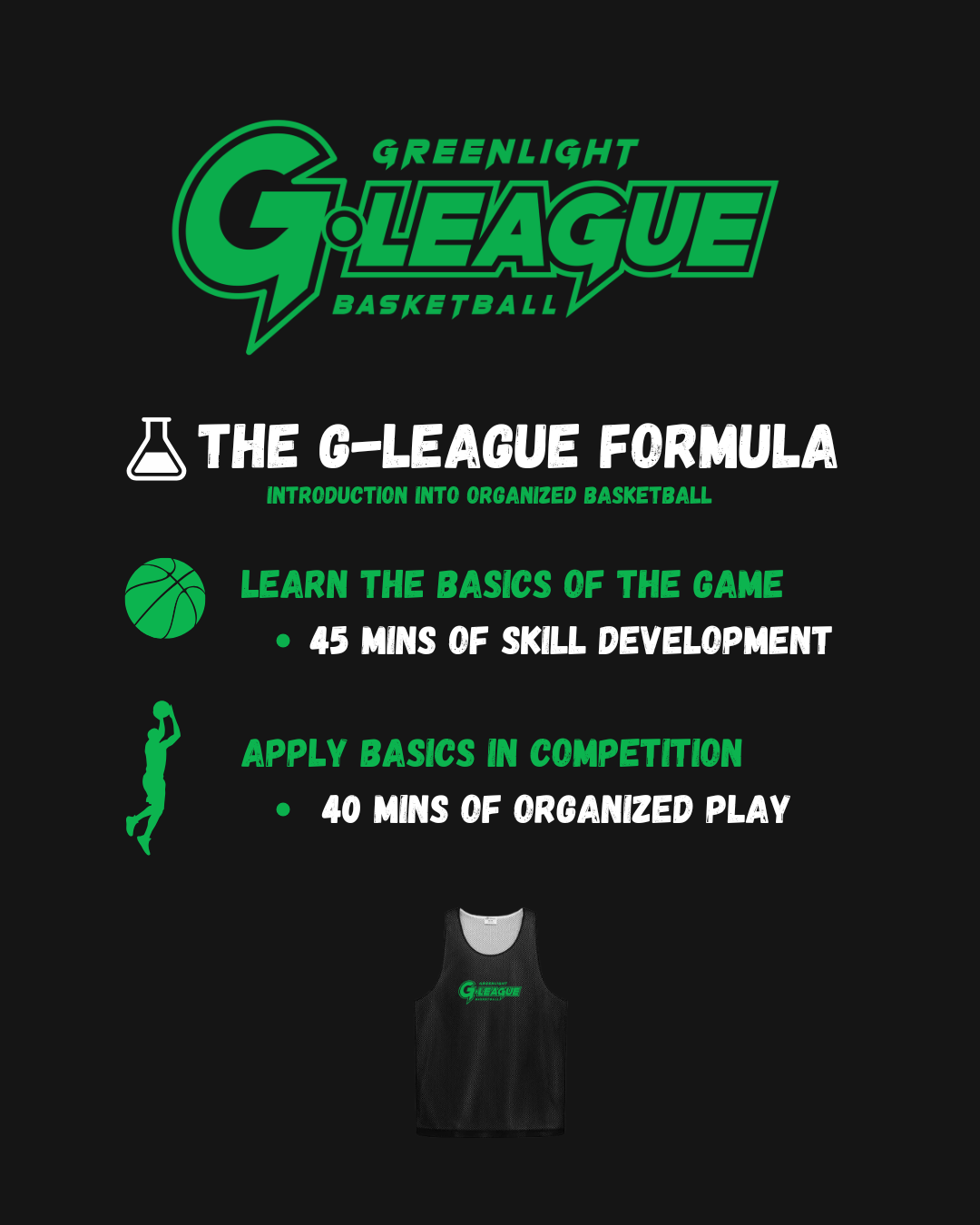 Each session in our Greenlight G-League is designed to help young players build a strong foundation in basketball. We believe the best way for players to grow is through a balanced approach we call the G-League Formula.